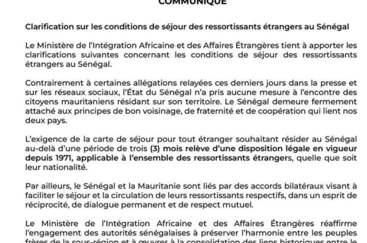 Actualités Breaking news Politique Reste du monde Séjour des étrangers au Sénégal : Dakar dément toute mesure ciblant les Mauritaniens juillet 28, 2025 36 vues