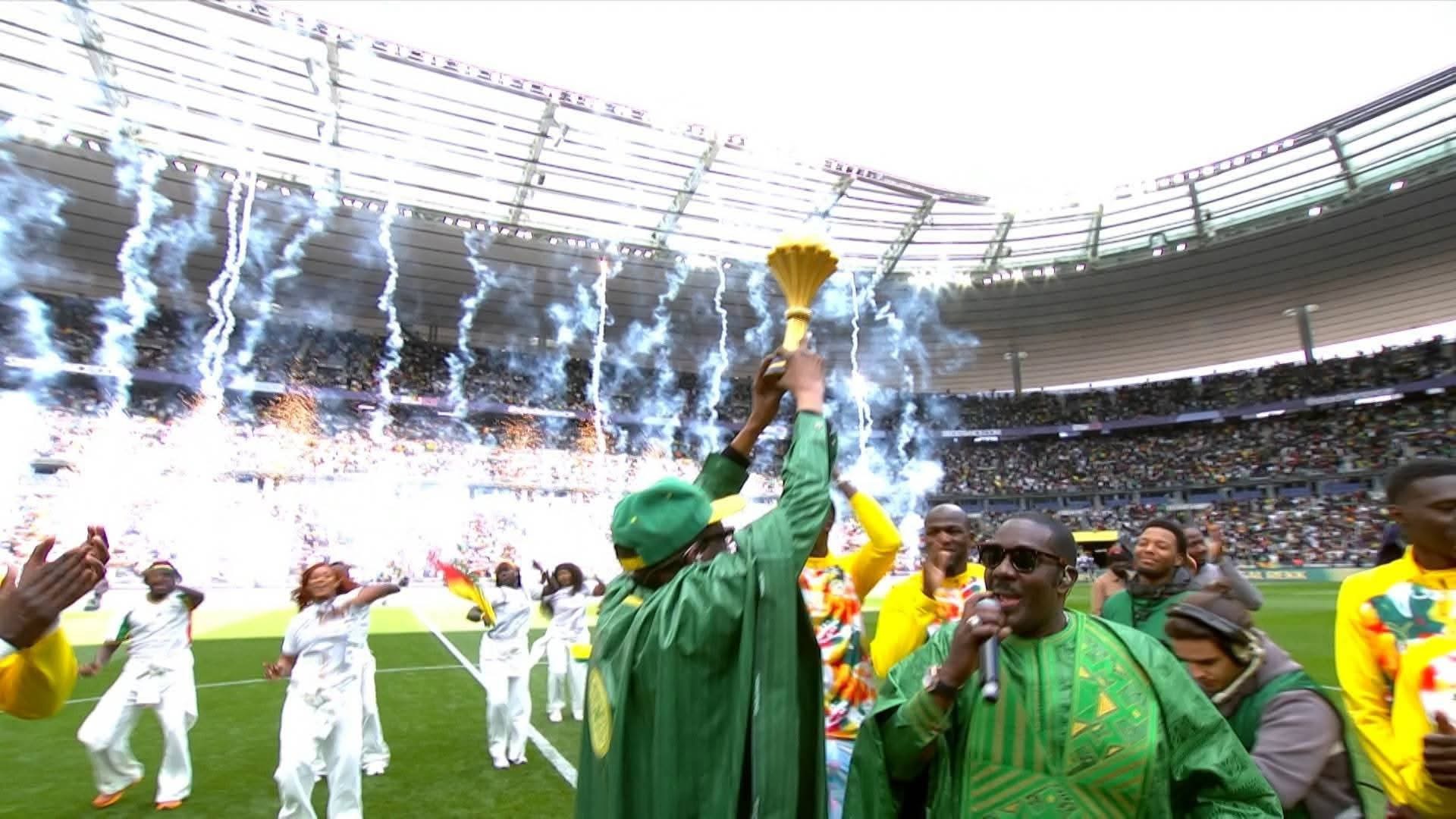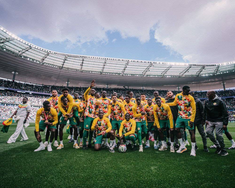 Regardez ces images, vibrantes et solennelles à la fois. Dans l’enceinte mythique du Stade de France, la Équipe du Sénégal de football ne s’est pas contentée de célébrer une victoire : elle a mis en scène un moment d’histoire, chargé d’émotion, de fierté et de défi. Les visages rayonnants, le trophée brandi, les deux étoiles scintillant sur le maillot… chaque image raconte bien plus qu’un simple succès sportif.