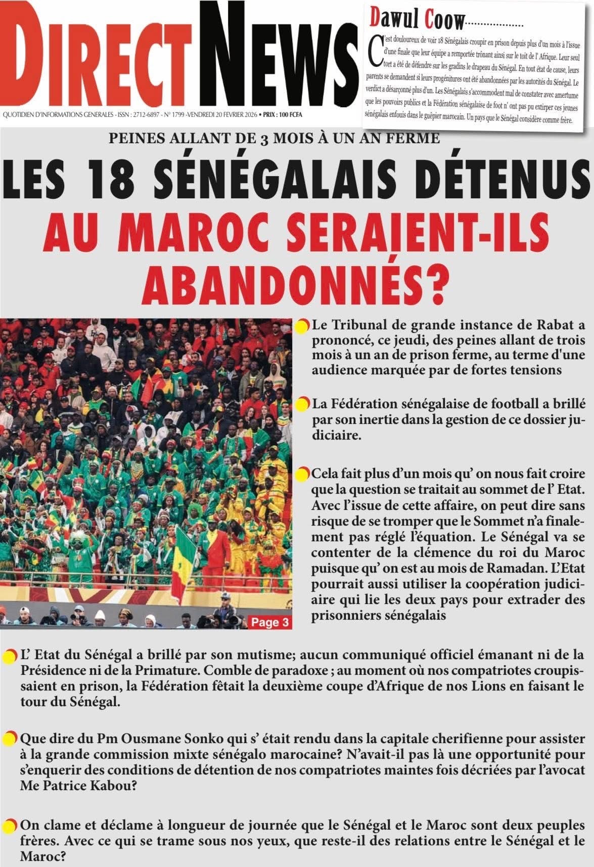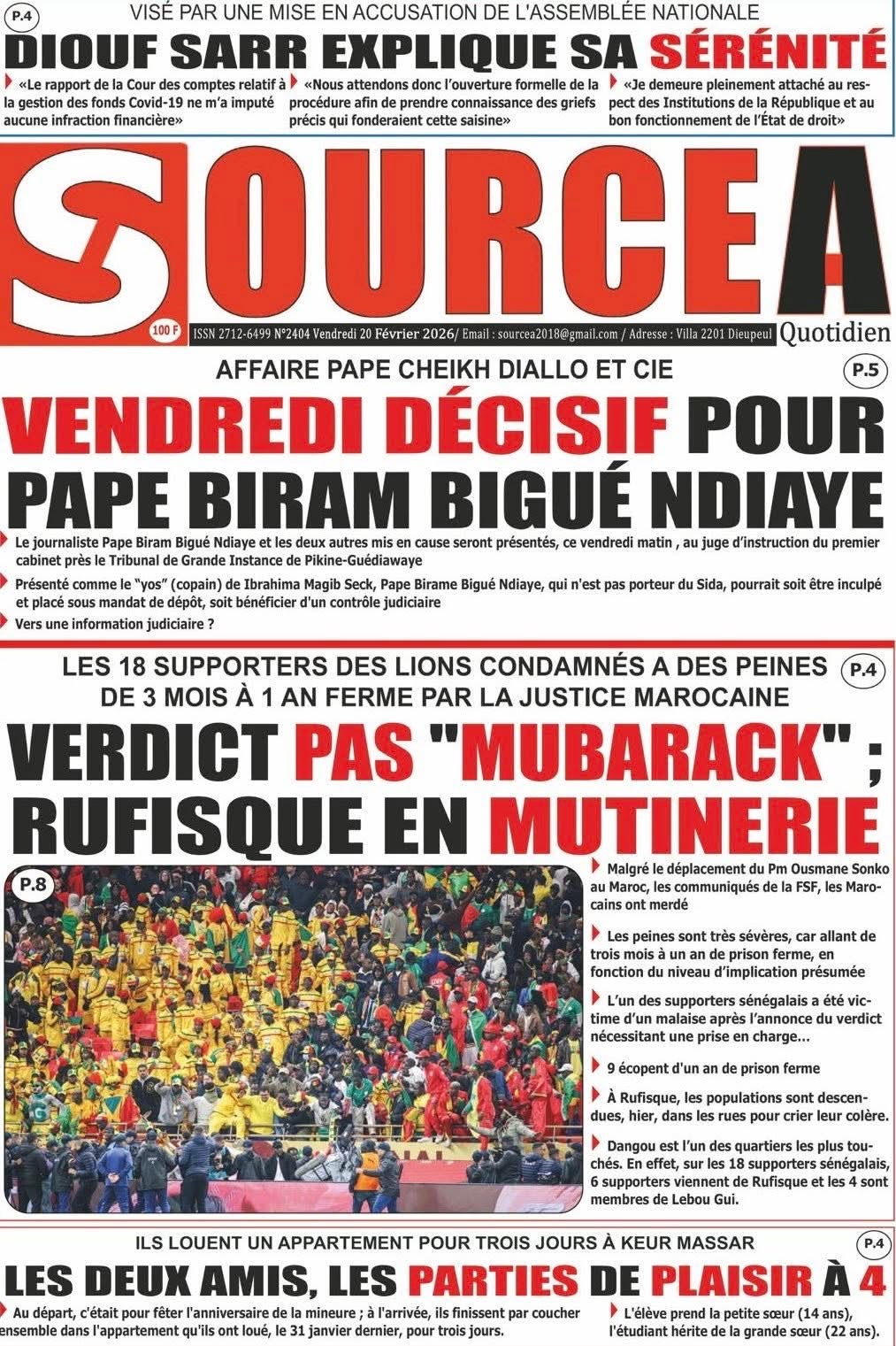 Revue des titres du vendredi 20 février 2026