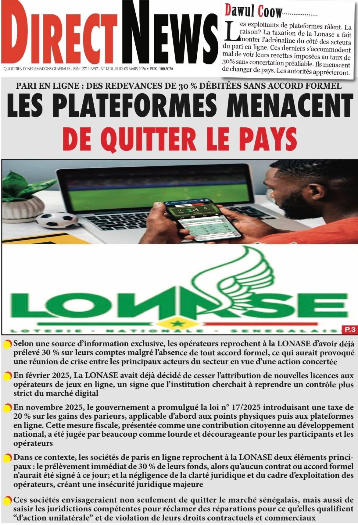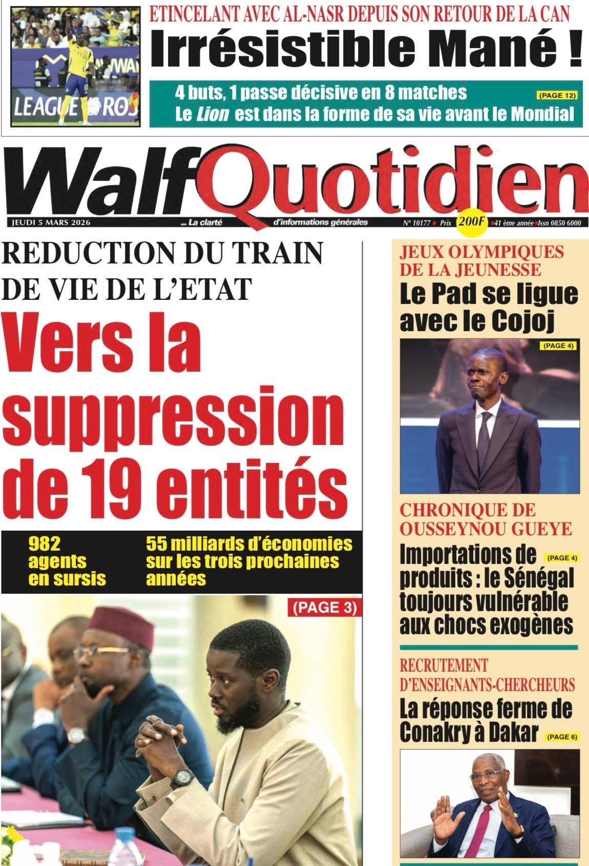 Revue des titres du jeudi 5 mars 2026