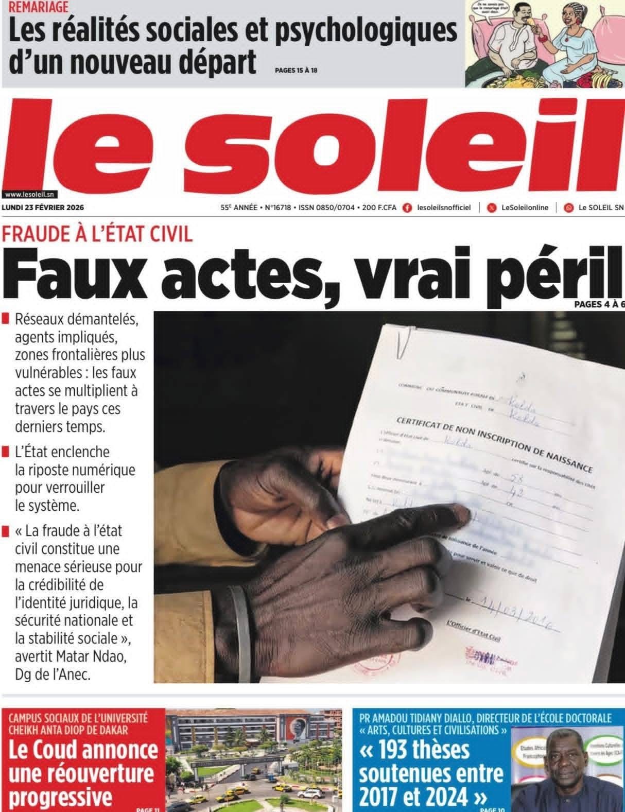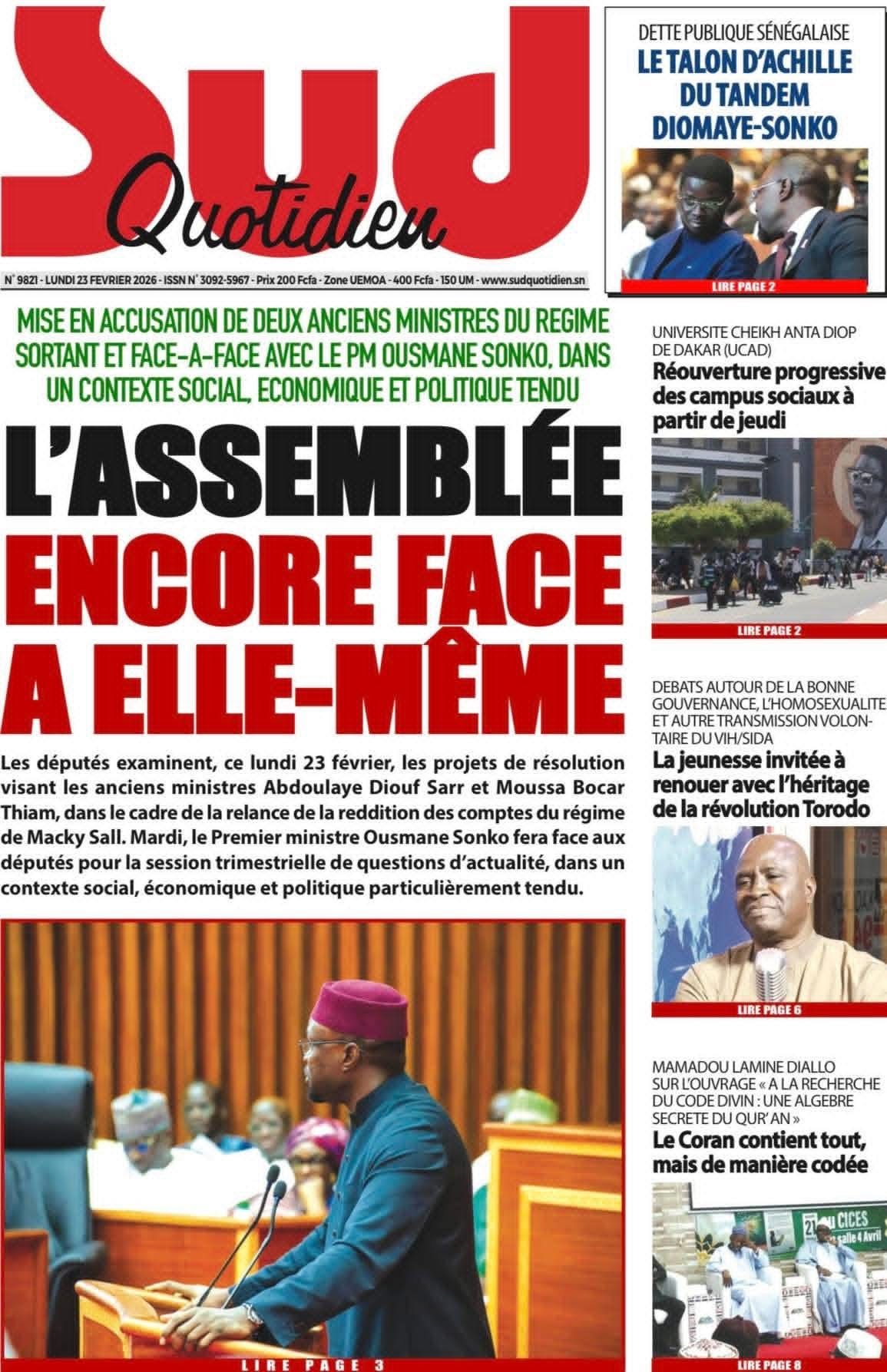 Revue des titres du lundi 23 février 2026
