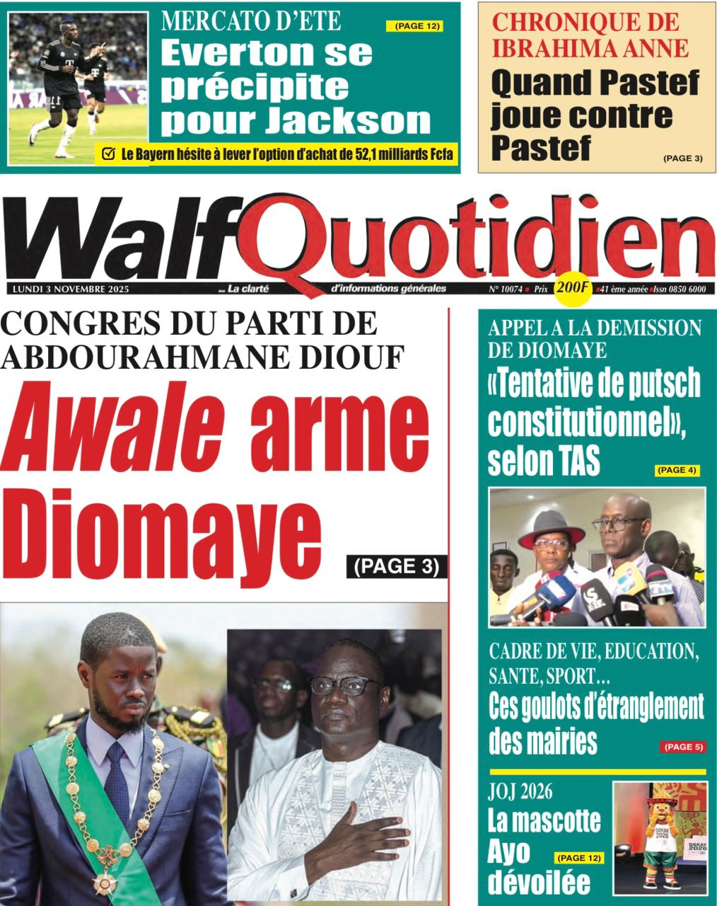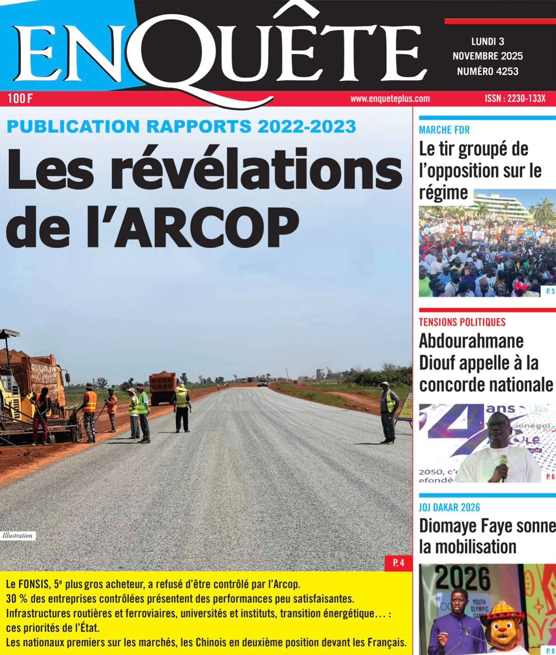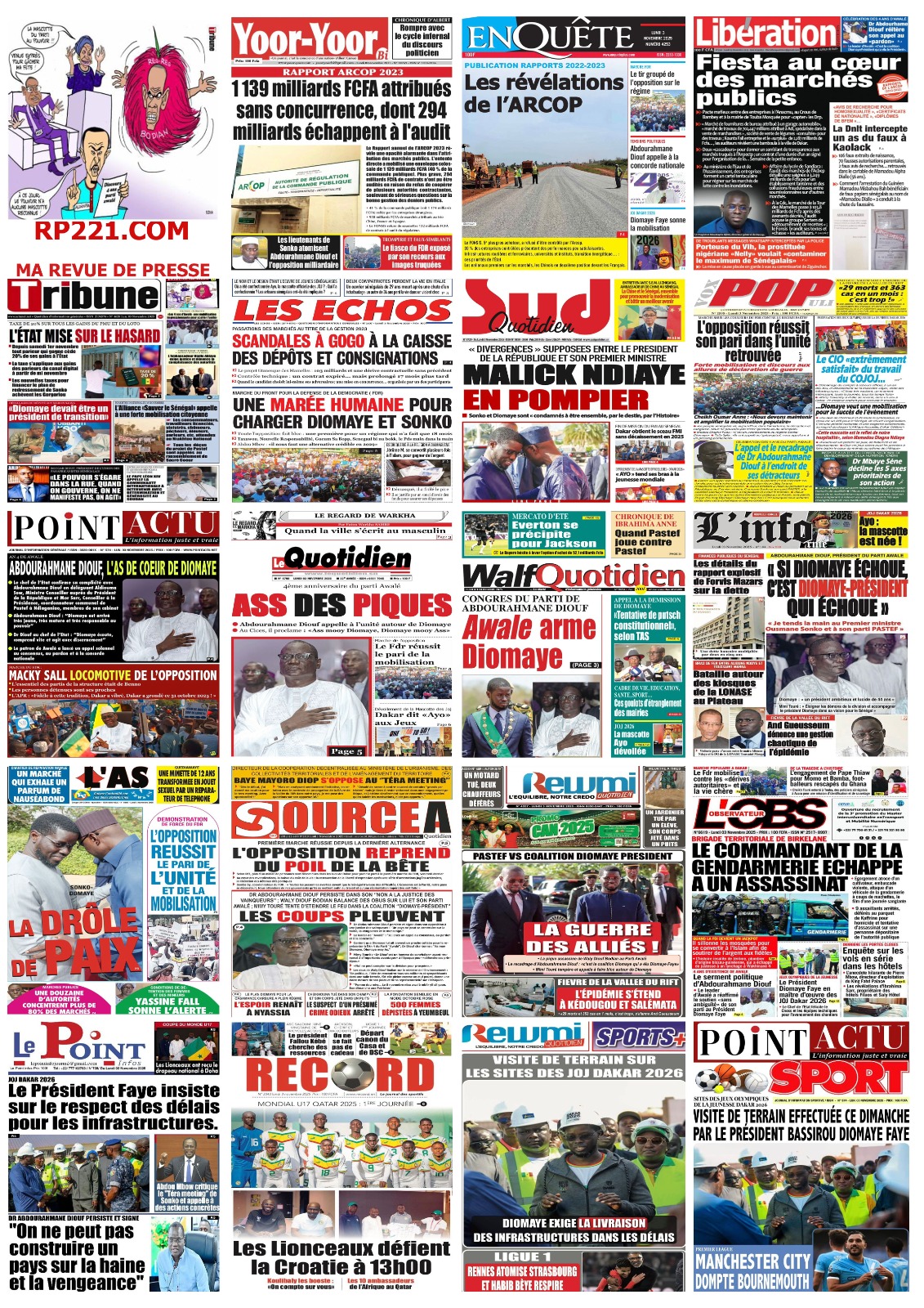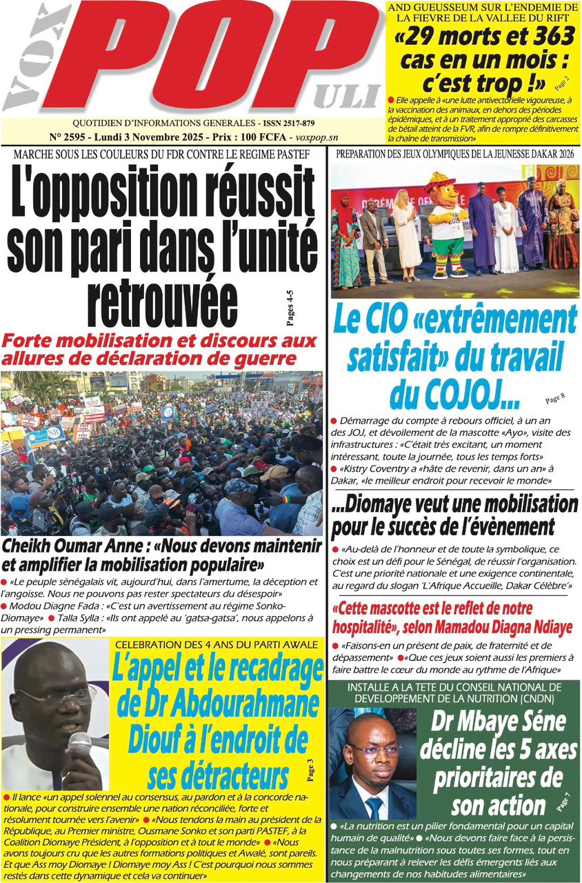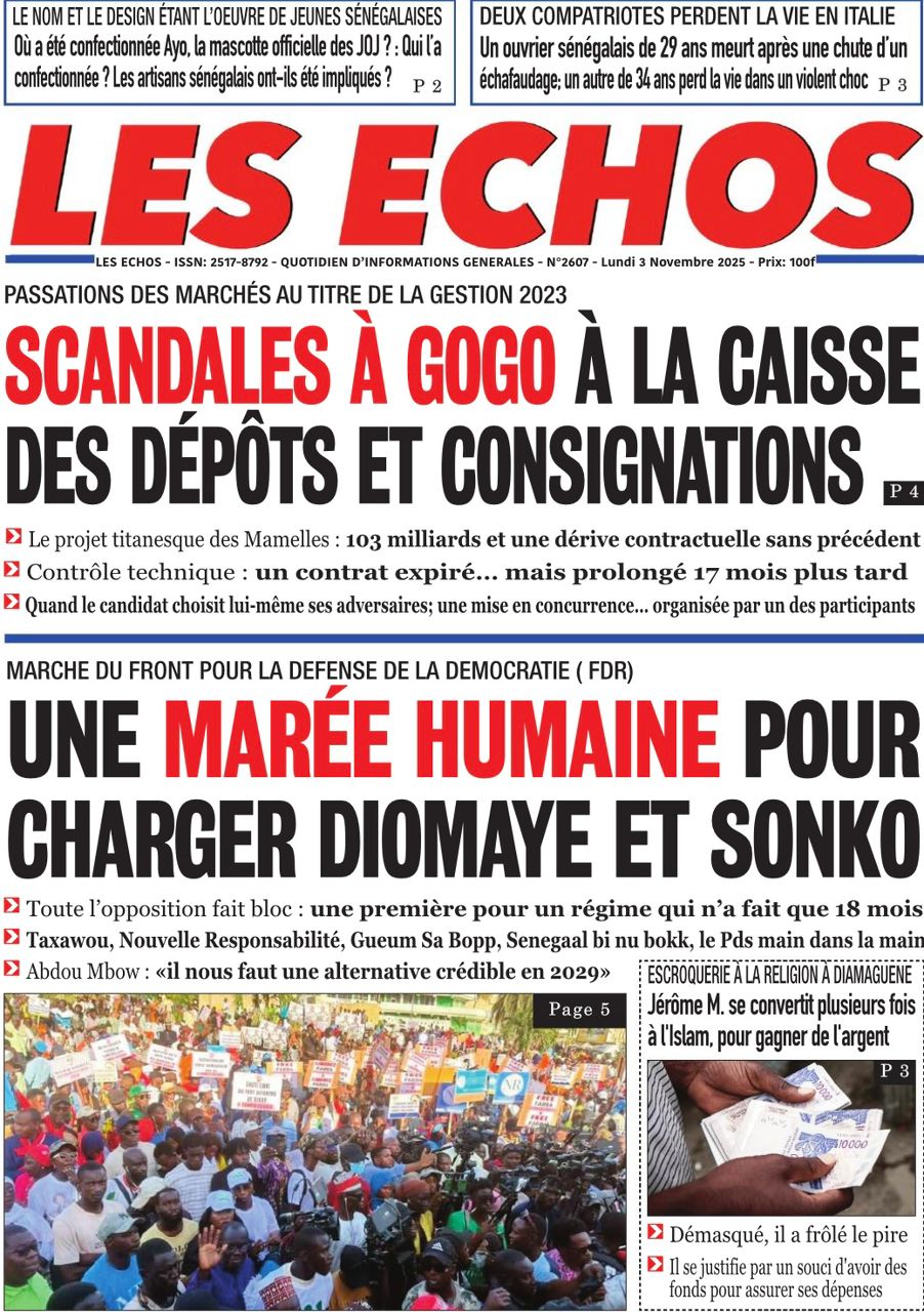 Revue des titres du lundi 3 novembre 2025