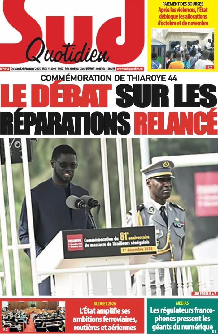Revue des titres du mardi 2 décembre 2025