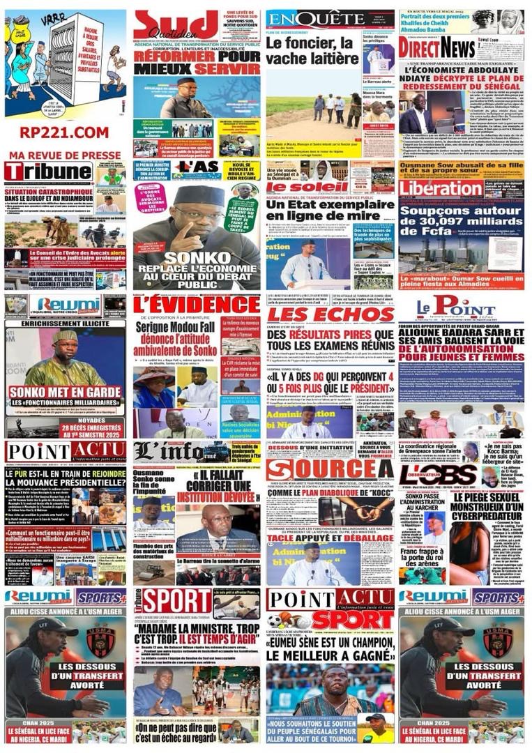 Chaque jour, l’actualité évolue et façonne le débat public. Politique, économie, faits de société, sport… Les journaux de ce matin mettent en lumière les sujets qui captivent l’opinion et rythment le pays. Retrouvez ici un tour d’horizon des principales Unes du jour pour ne rien manquer de l’essentiel.