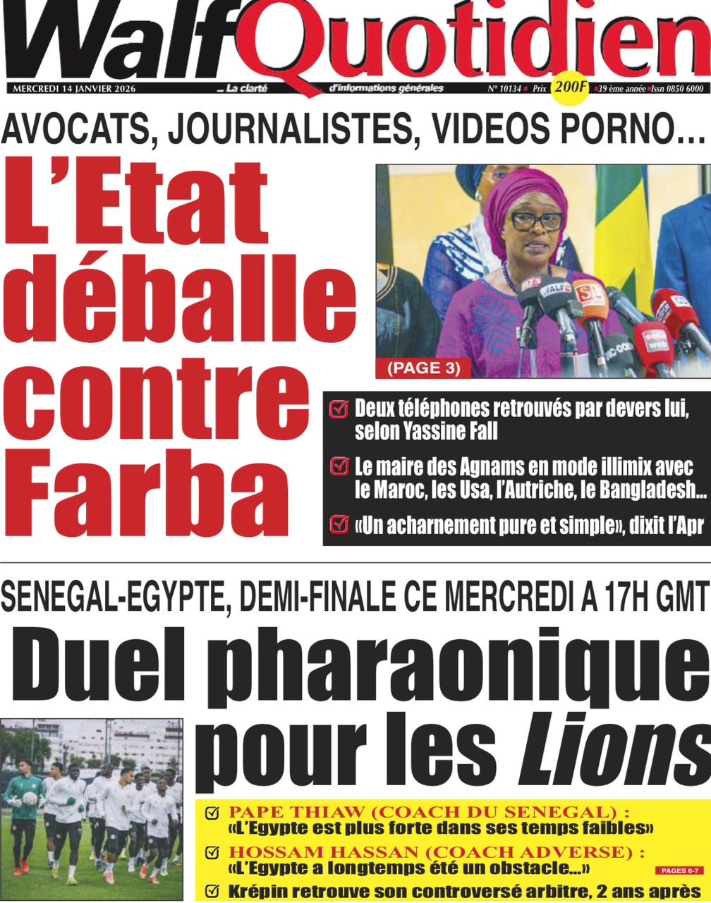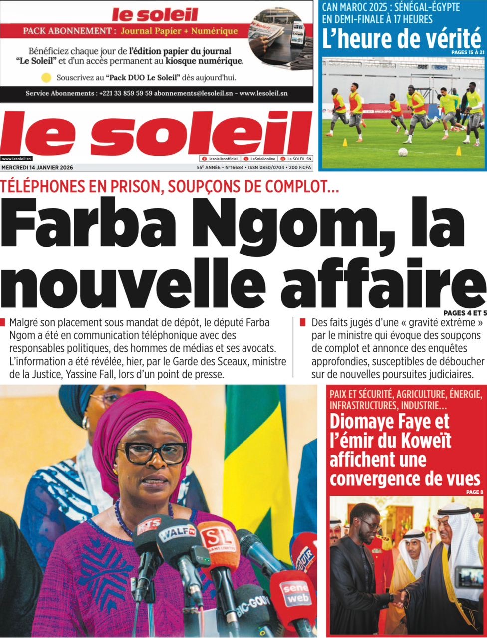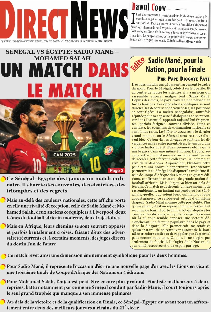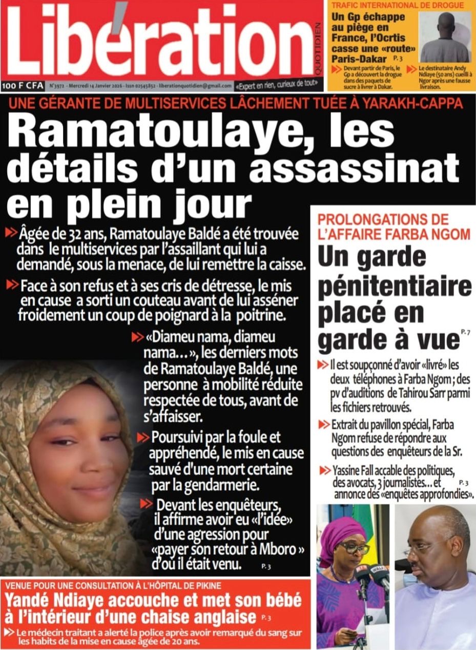 Revue des titres du mercredi 14 janvier 2026