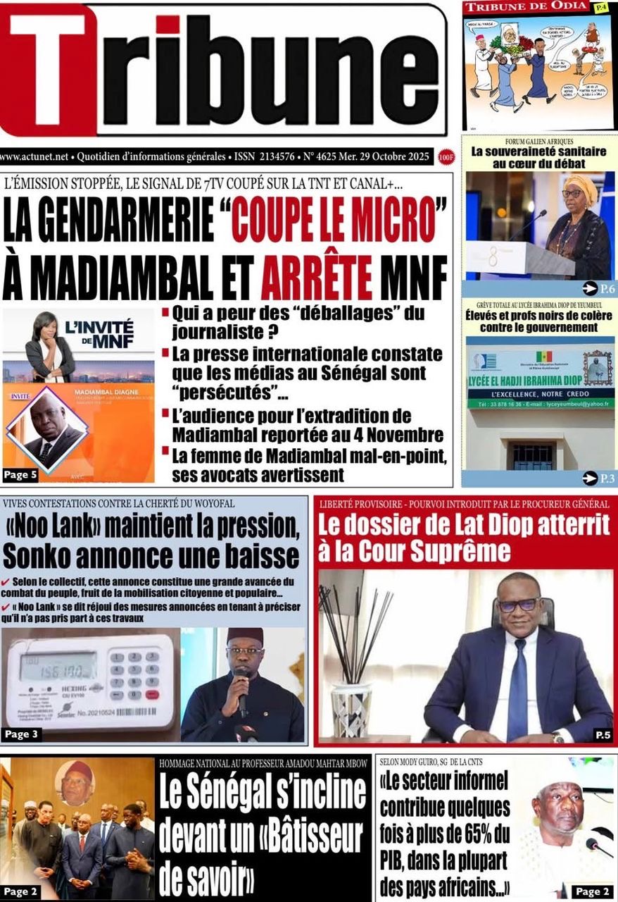 Revue des titres du mercredi 29 octobre 2025