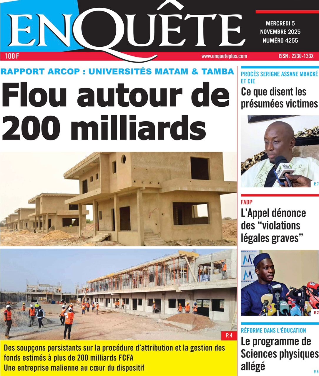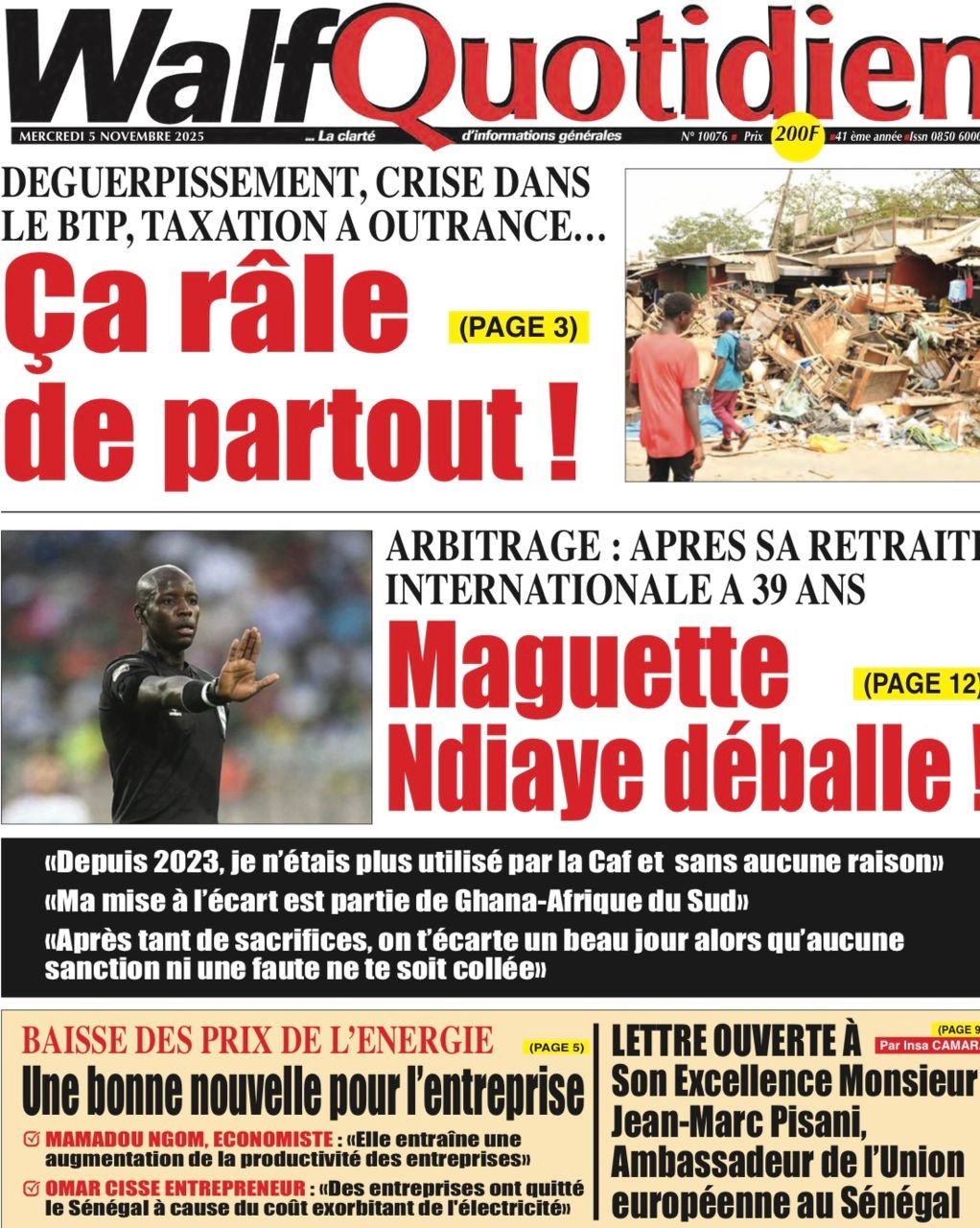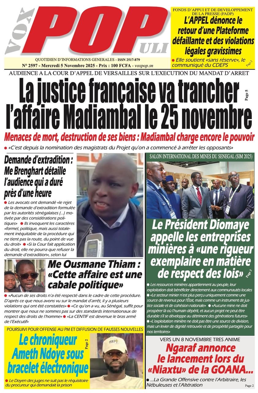 Revue des titres du mercredi 5 novembre 2025