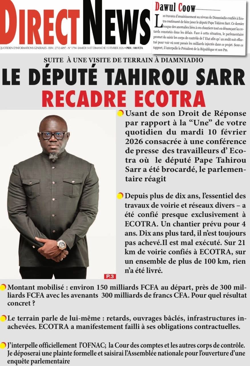Revue des titres du samedi 14 février 2026