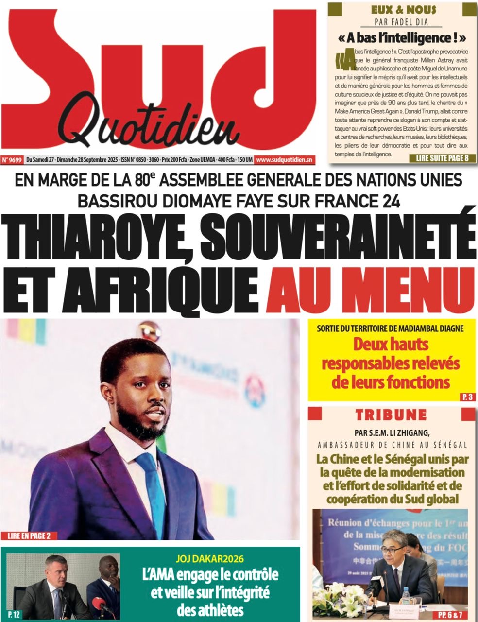 Revue des titres du samedi 27 septembre 2025