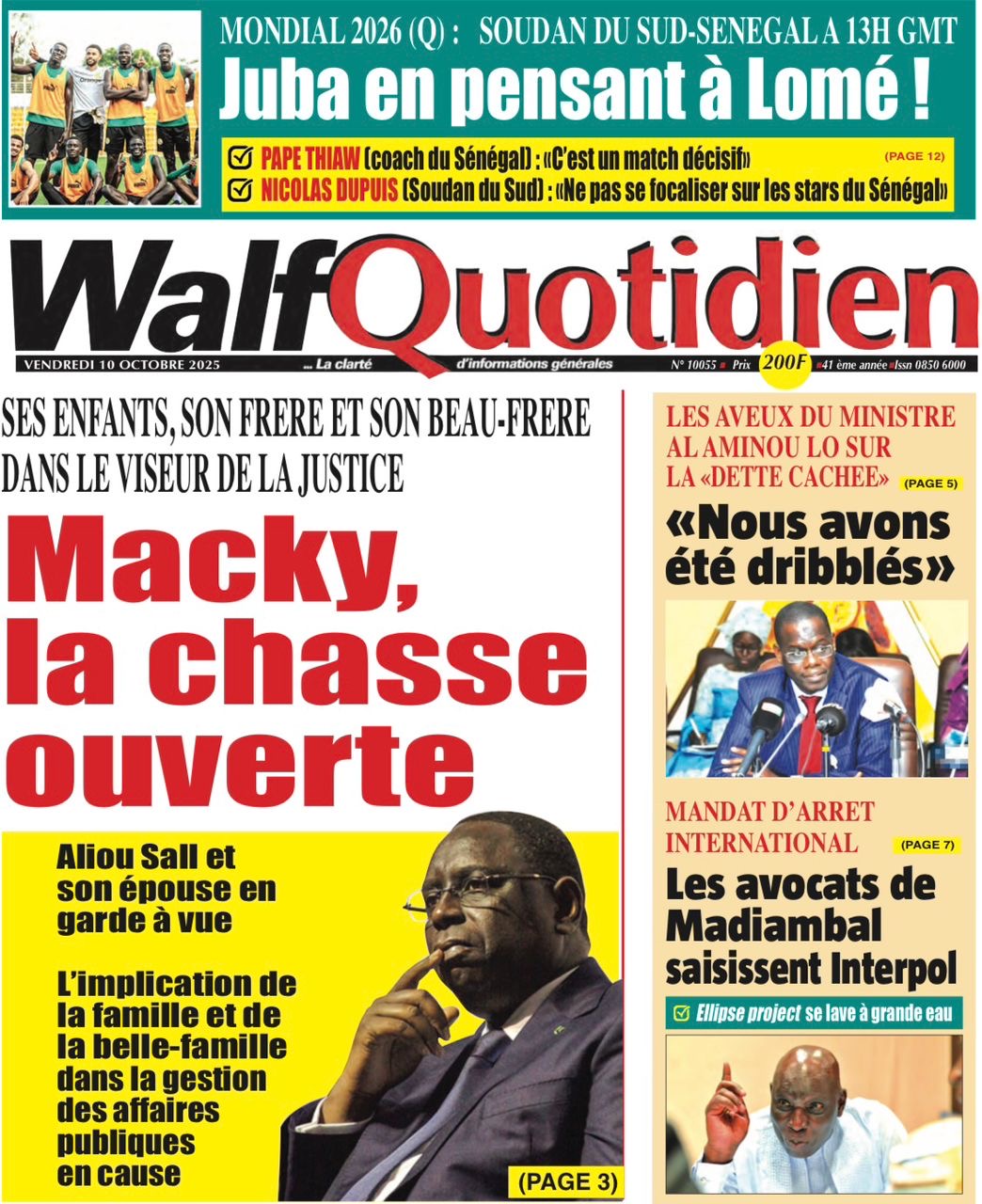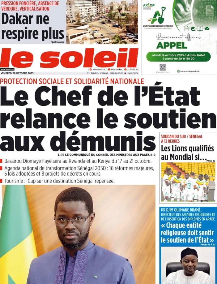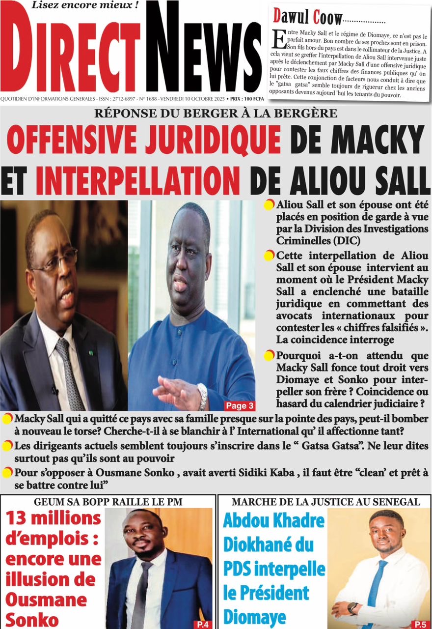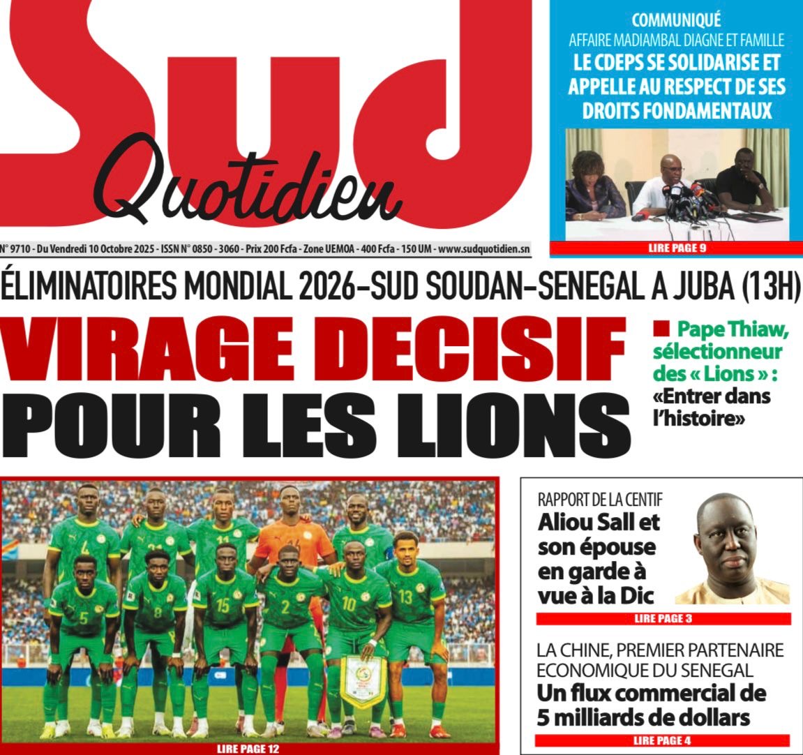 Revue des titres du vendredi 10 octobre 2025