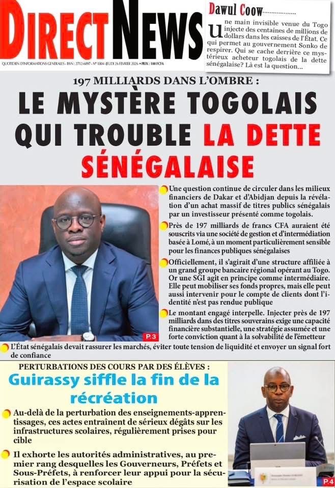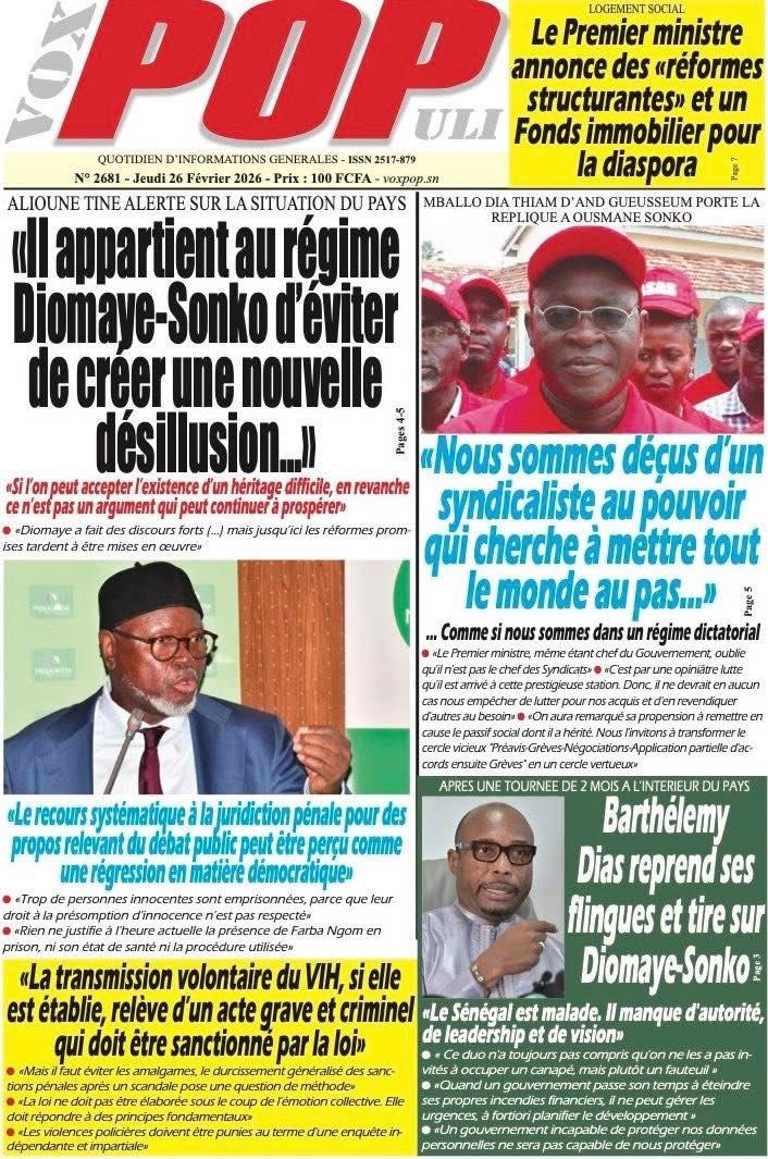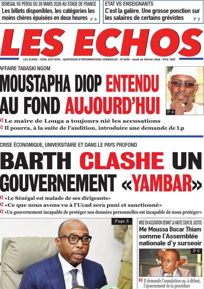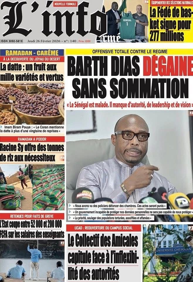 Revue des titres du vendredi 26 février 2026