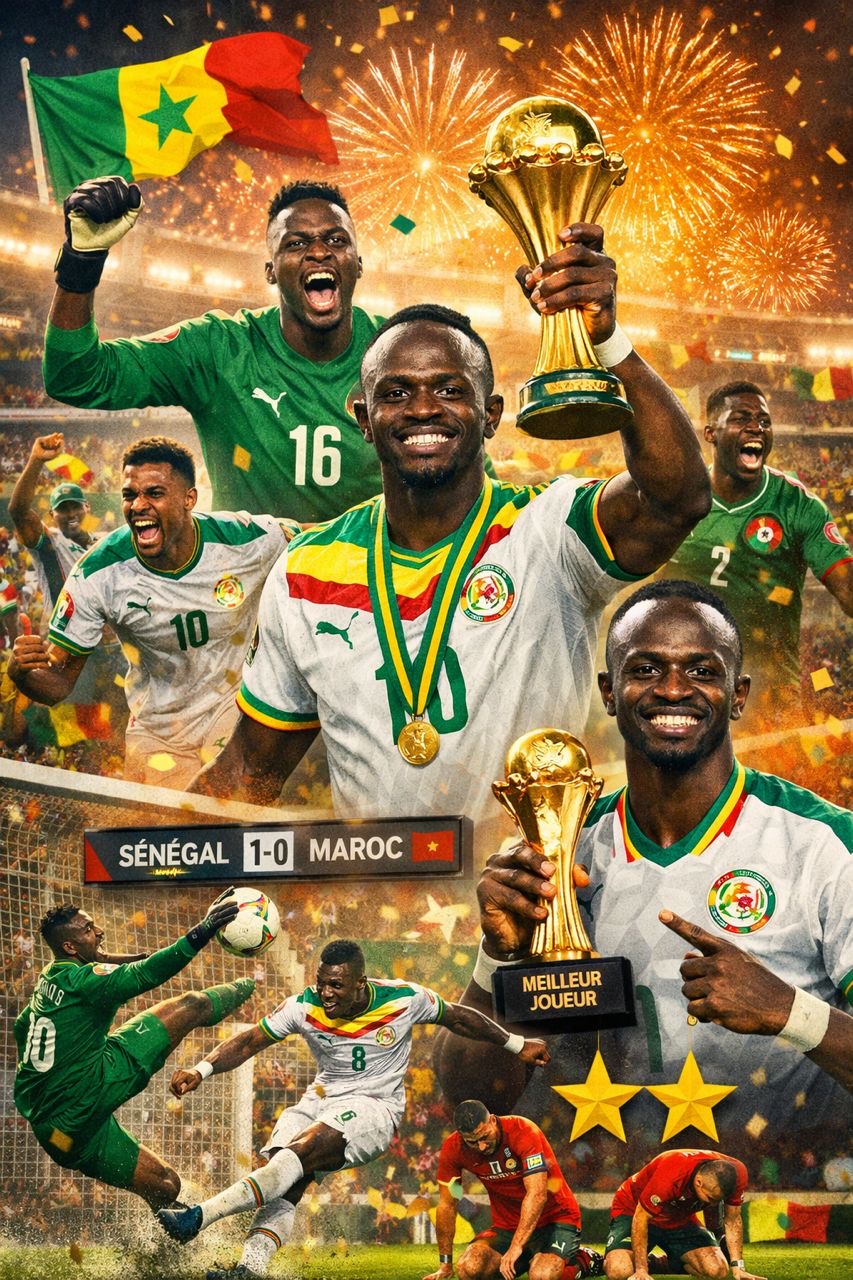 Le Sénégal est champion d’Afrique et décroche sa deuxième étoile au terme d’une finale haletante et controversée face au Maroc. Dans un match marqué par un arbitrage jugé catastrophique et largement en faveur des Lions de l’Atlas, les Lions de la Teranga ont puisé dans leurs ressources mentales pour s’imposer et écrire une nouvelle page de leur histoire.